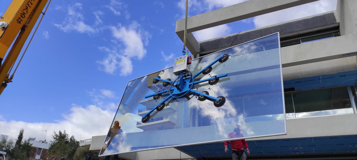 這種電動(dòng)式旋轉(zhuǎn)吸盤適用于安全地升降和運(yùn)送表面平整的板材,如玻璃、金屬、石板、木板等