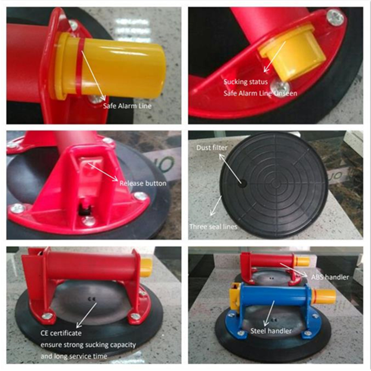 用于吸附非滲漏平滑表面,4次按壓吸附,一鍵放氣,安全指示紅線可隨時發(fā)現泄漏